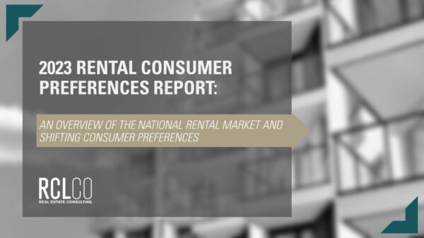 RCLCO 2023 Renter Consumer Preference Survey provides an overview of the national rental market and insight into the demographics and preferences of renters. RCLCO uses data from a comprehensive national survey, conducted in late 2022, to illuminate the motivations, product type preferences, and locational considerations that are driving today’s renters of both multifamily and single-family product. We outline the state of the rental housing market in the United States, including multifamily renters and single-family renters, and provide current industry trends and outlook for the asset class as a whole.